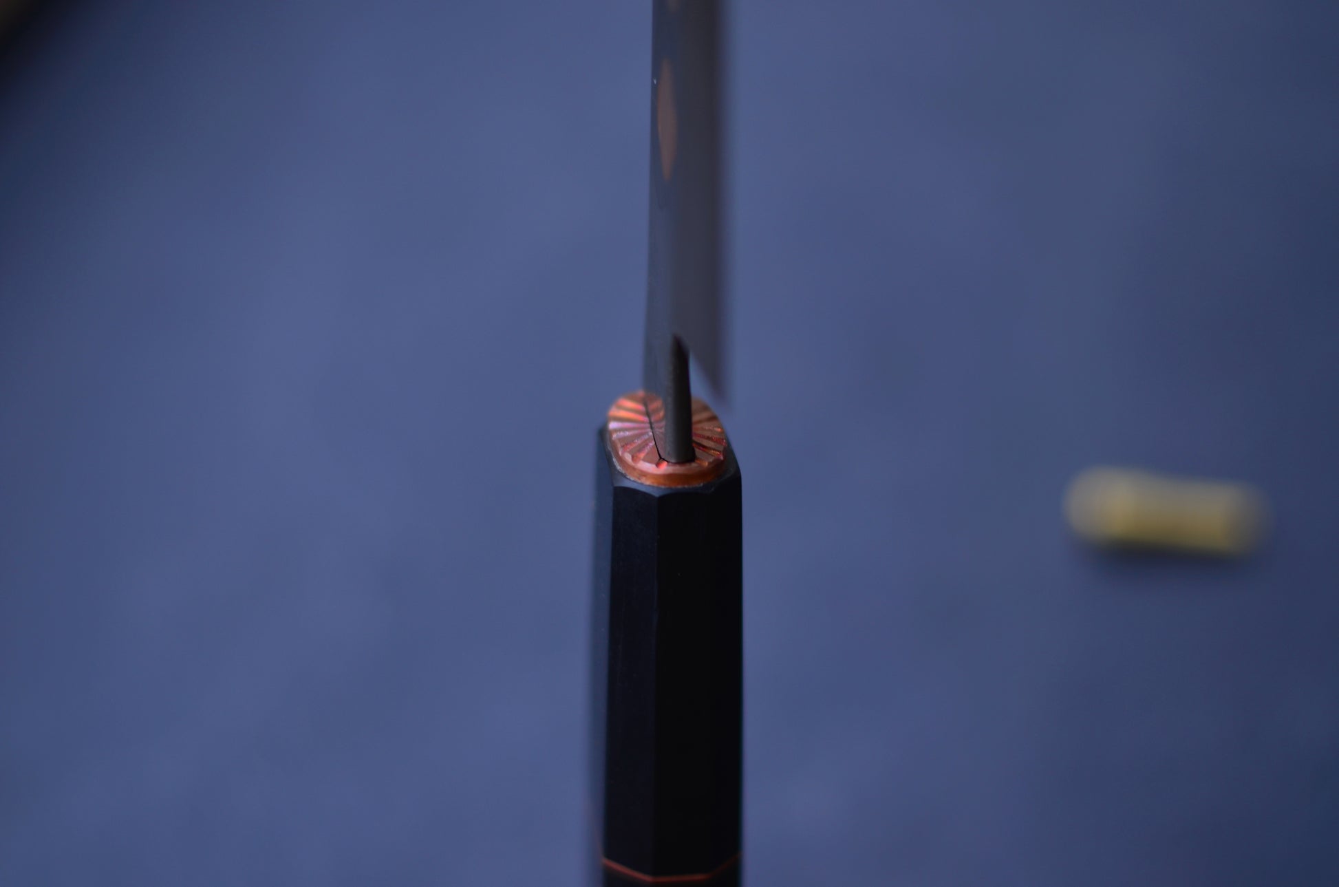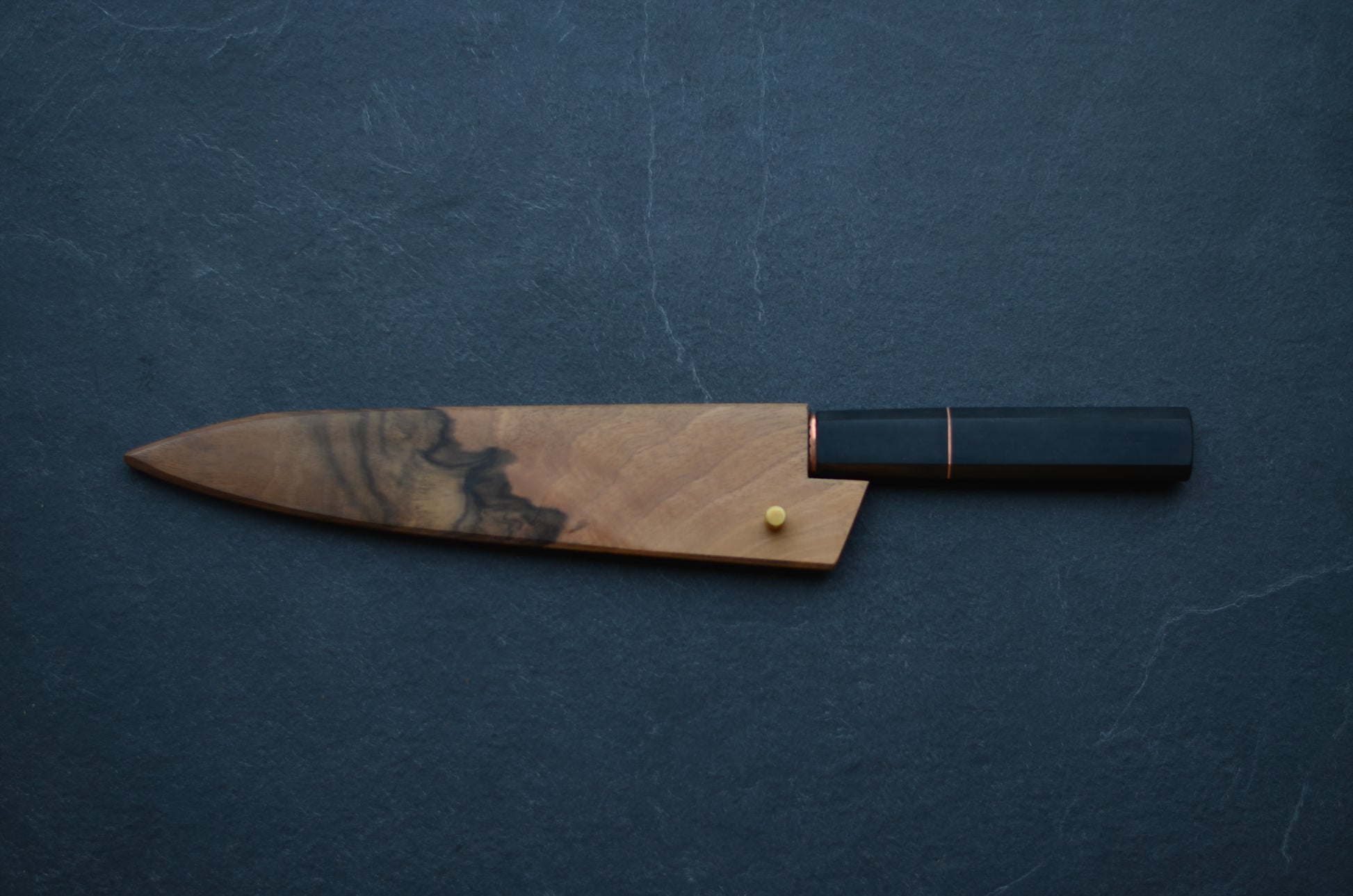 Manche en Richlite noire avec intercalaire et bague en cuivre. Rivet mosaïque.